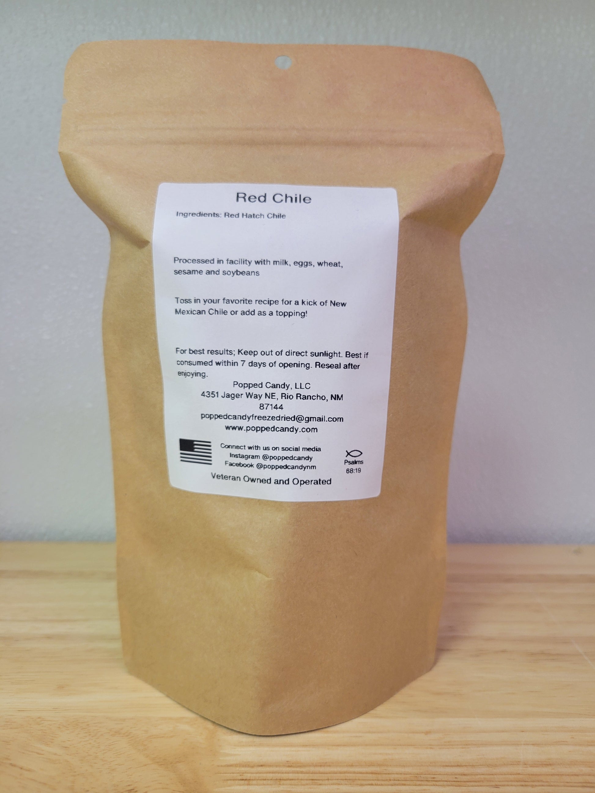 Bold, smoky, and unmistakably New Mexican — our Freeze-Dried Hatch Red Chile captures the essence of sun-ripened Hatch peppers in a light, crunchy and shelf stable form. Grown in the Hatch Valley and freeze-dried to lock in the flavor and heat, this brings deep, roasted chile flavor with no added sugar, preservatives, or fillers. Gluten-free, vegan, and snack-ready, it’s perfect on its own or crumbled over your favorite dishes for an instant flavor boost
