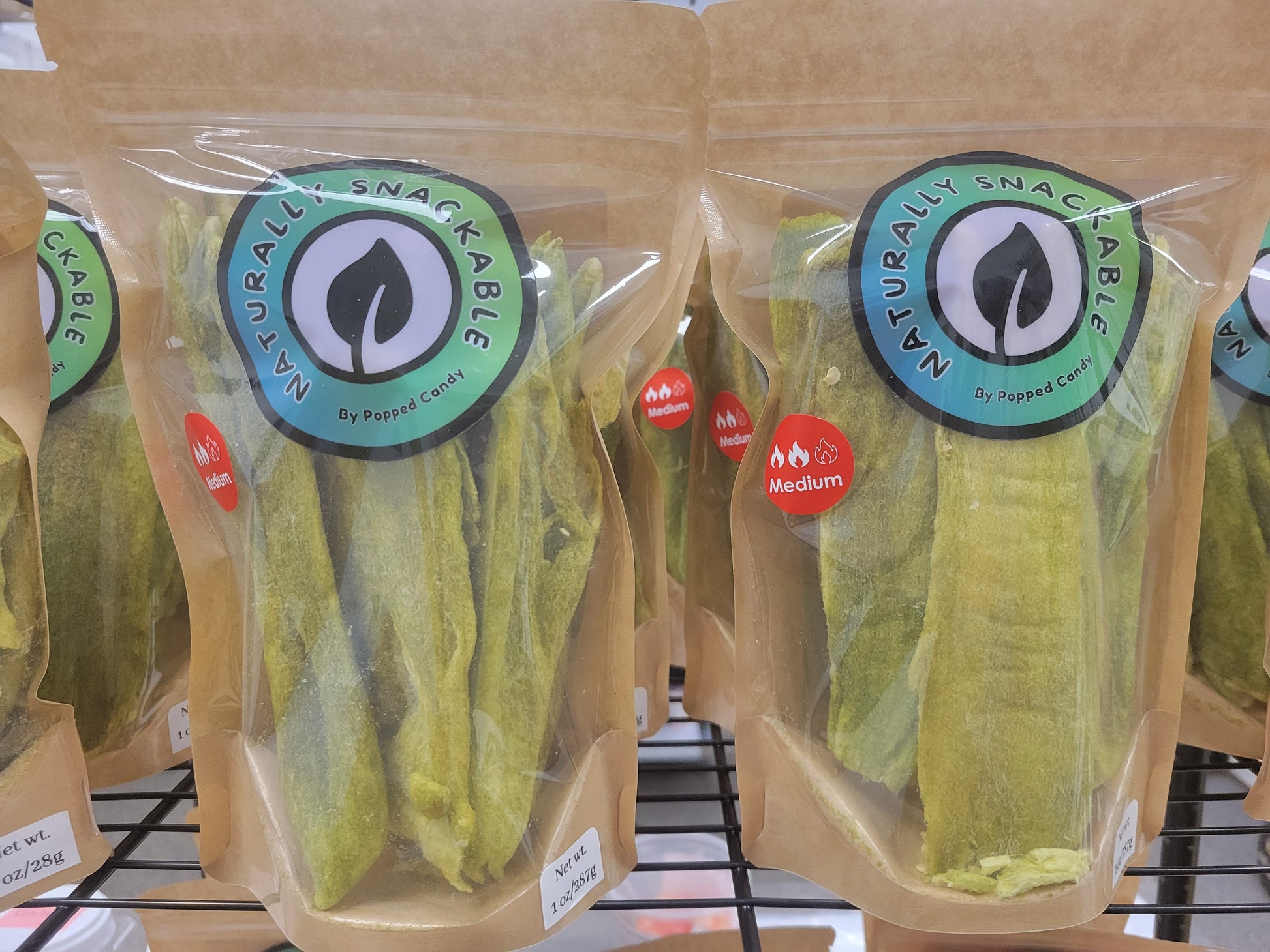 Freeze Dried authentic New Mexican Hatch green chile! Like a chip but smokey and hot! This variety is Big Jim and has a medium heat level.